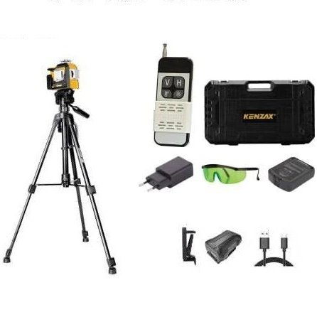 پایه مغناطیسی،ریموت کنترل،باتری قابل شارژ و شارژر،عینک مخصوص نور سبز،کیف حمل مقاوم،دفترچه راهنما،پایه قابل تنظیم، جا باتری،صفحه هدف لیزر،سه پایه