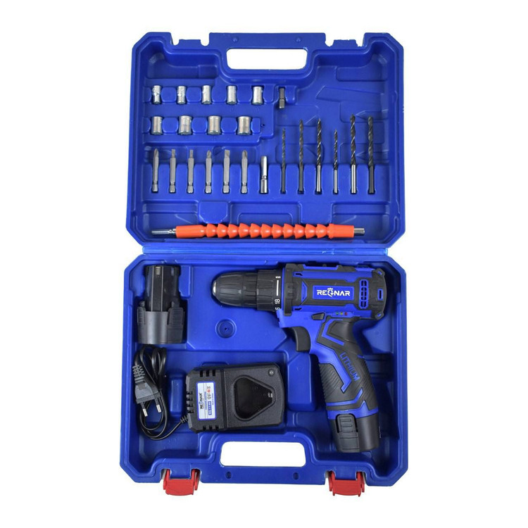 پایه شارژر ، باطری اضافه ، یک عدد نگهدارنده مته ، 6 عدد سر پیچ گوشتی 50 میلی لیتر ،سر پیچ گوشتی 4-5-6 ، مته آهن سایز 4-5-6 ، 9 عدد سری بکس به شماره 5-6-7-8-9-10-11-12-13 ، یک عدد کمکی انعطاف پذیر به طول 250 میلی متر