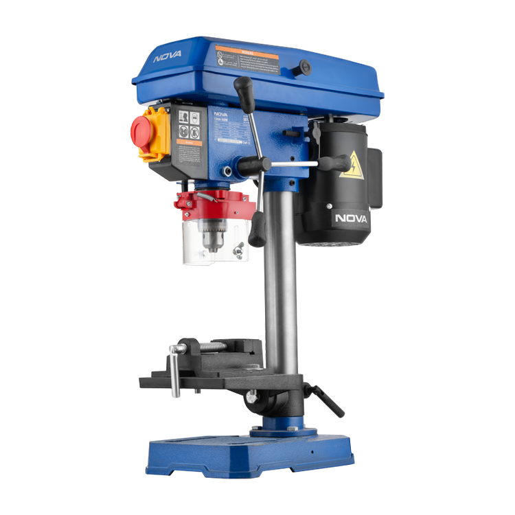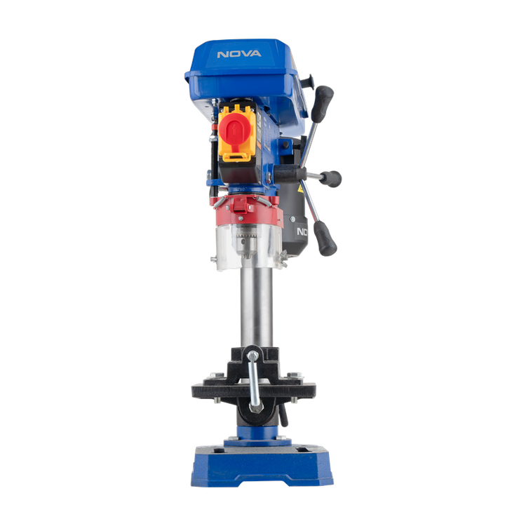 این مدل با ارتفاع 580 میلیمتر، پایههای چدنی سنگین و دستگیرههای بزرگ، پایداری و کنترل بهتری را در حین کار ارائه میدهد. وجود سوئیچ اضطراری مجهز به میکروسوئیچ ایمنی، چراغ LED، و قاب شفاف محافظ سهنظام، امنیت و راحتی کاربر را تضمین میکند. همچنین گیره چدنی 2.5 اینچی قابل نصب روی میز، فولیهای سختکاریشده از آلیاژ آلومینیوم، و کابل برق ضخیم مطابق استاندارد VDE، کیفیت بالای ساخت این محصول را نشان میدهد. دریل ستونی 5013 انتخابی مطمئن برای کارگاههای صنعتی و پروژههای دقیق نجاری و فلزکاری است.