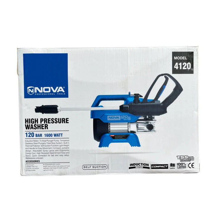 کارواش کامپکت نووا مدل 4120 با فشار خروجی 120 بار و توان 1600 وات، انتخابی ایدهآل برای افرادی است که به تمیزی محیط اطراف خود اهمیت میدهند. این مدل با طراحی سبک و جمعوجور، امکان حمل و نقل آسان را فراهم کرده و برای شستشوی خودرو، حیاط، دیوار، محوطه کارگاهها و بسیاری از سطوح دیگر مناسب است. موتور دینامی قدرتمند با سیمپیچ 100 درصد مس، علاوه بر طول عمر بالا، صدای کمی تولید میکند و عملکردی پایدار ارائه میدهد.