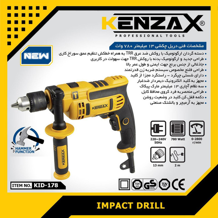 دریل چکشی 780وات کنزاکس مدل KID-178